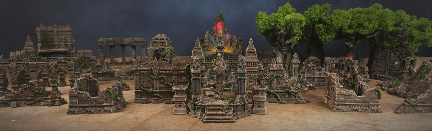 Discover the all-new range of fantasy jungle ruins terrain - designed and created by MiniWarGaming and I Demo Games. All the terrain you need to start playing!
