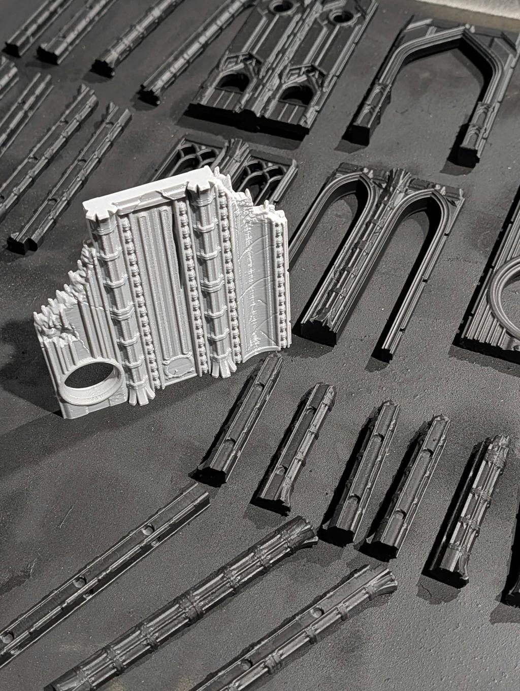 These models print amazingly on my Bambu P1S. I decided to print a raft with a single layer of support material. They have great rigidity when printing but come away with perfectly clean bases. Not yet fitted all the magnets, and the wife is in the midst of painting, but we will certainly be printing more than one of everything and likely a dozen of each wall post.