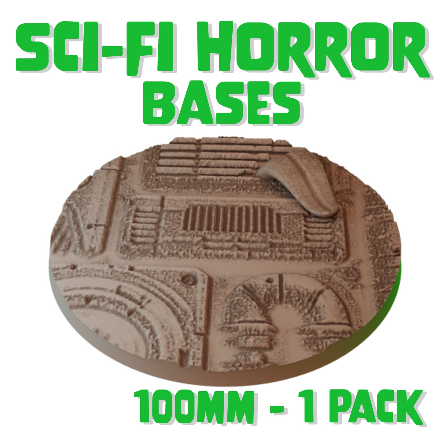 - Included – 1 highly detailed 100mm round base with sci-fi horror elements, suitable for various tabletop games.