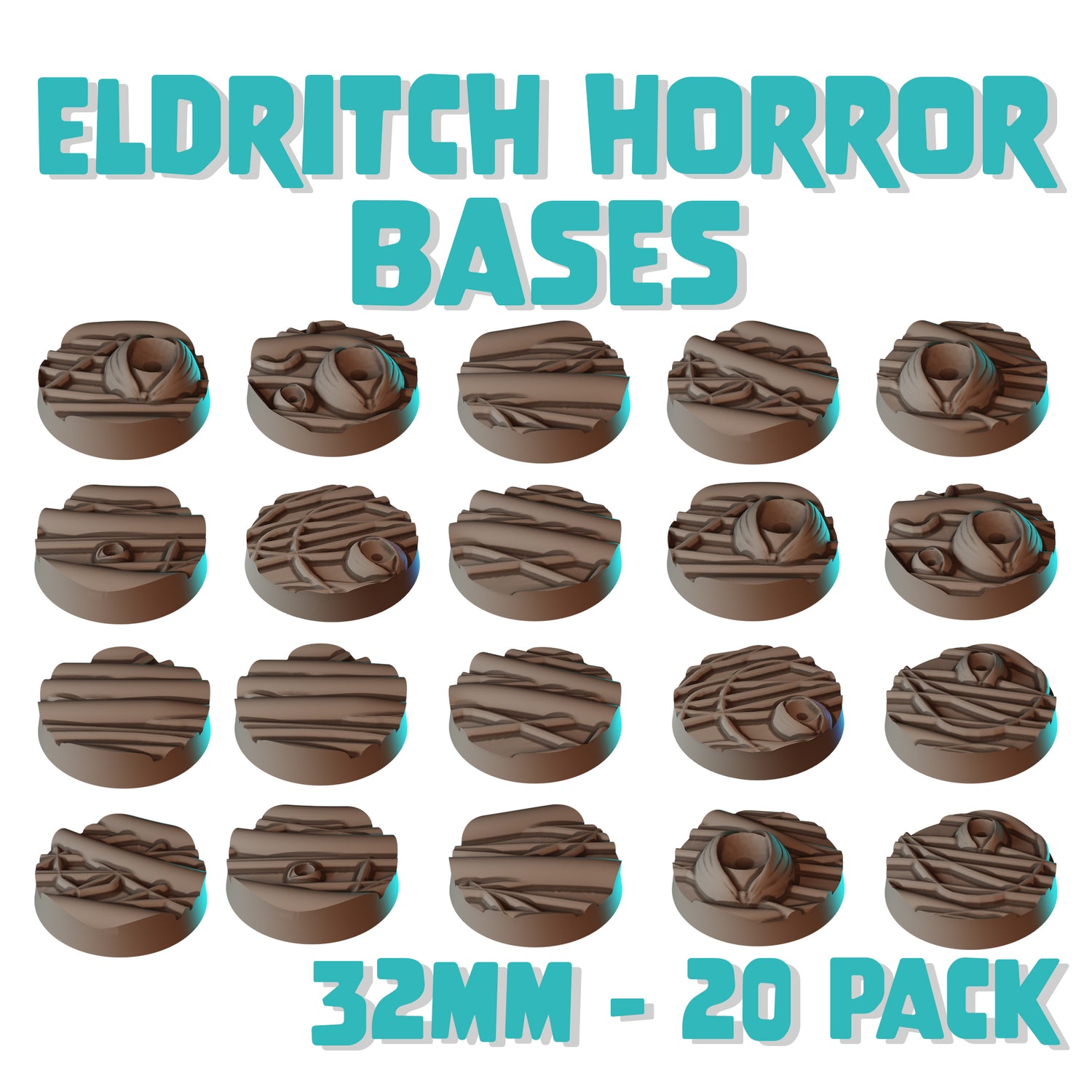 - Included – 20 highly detailed 32mm round bases with eldritch horror designs, compatible with various tabletop games.