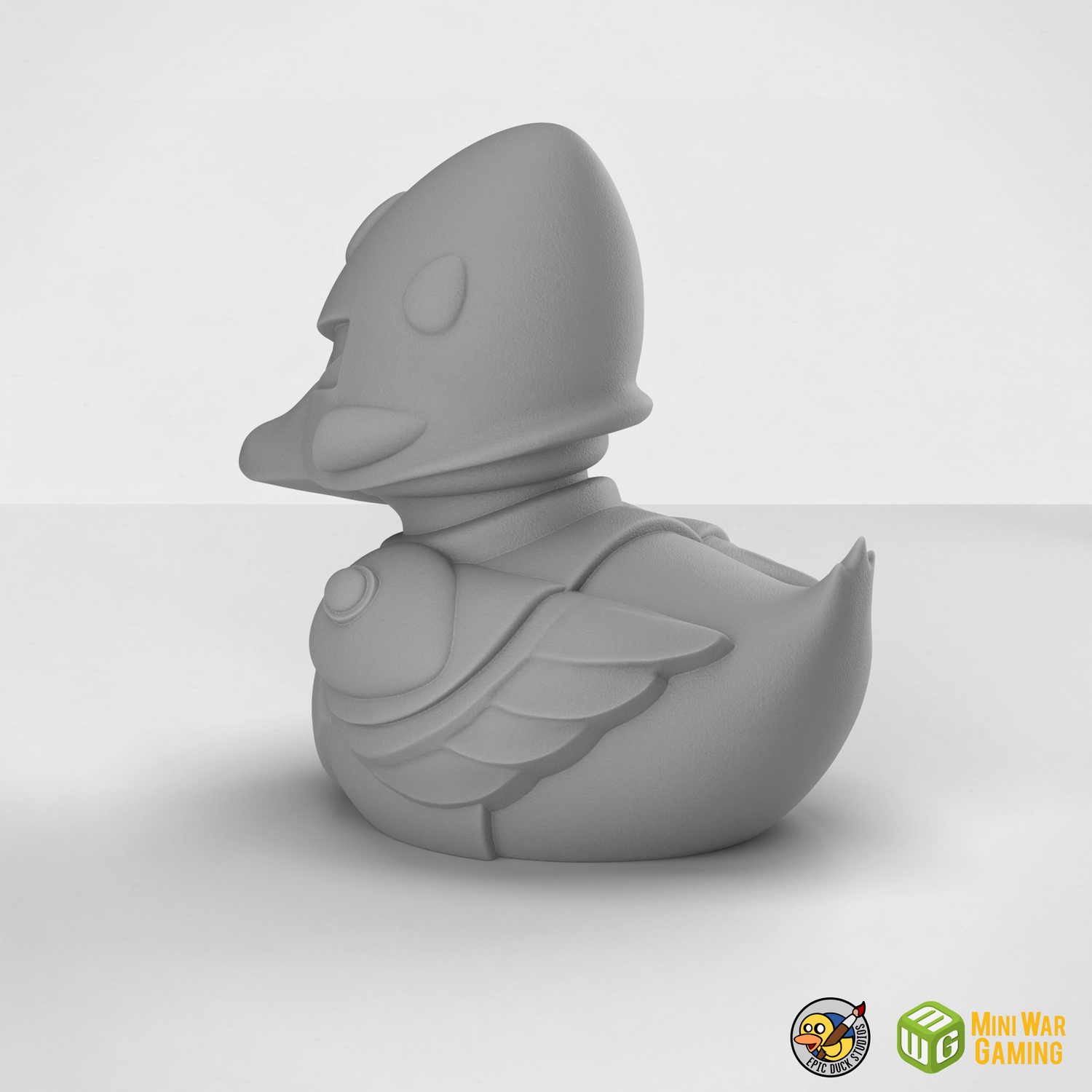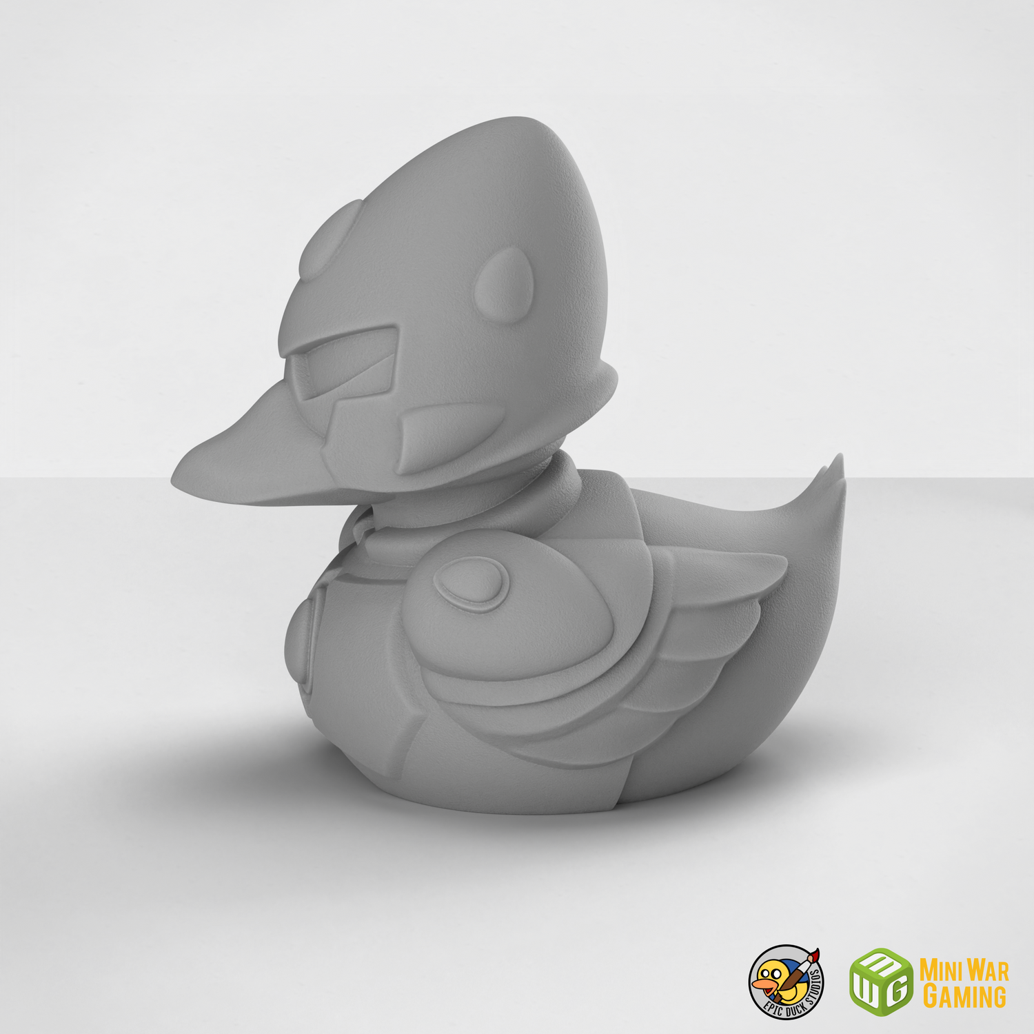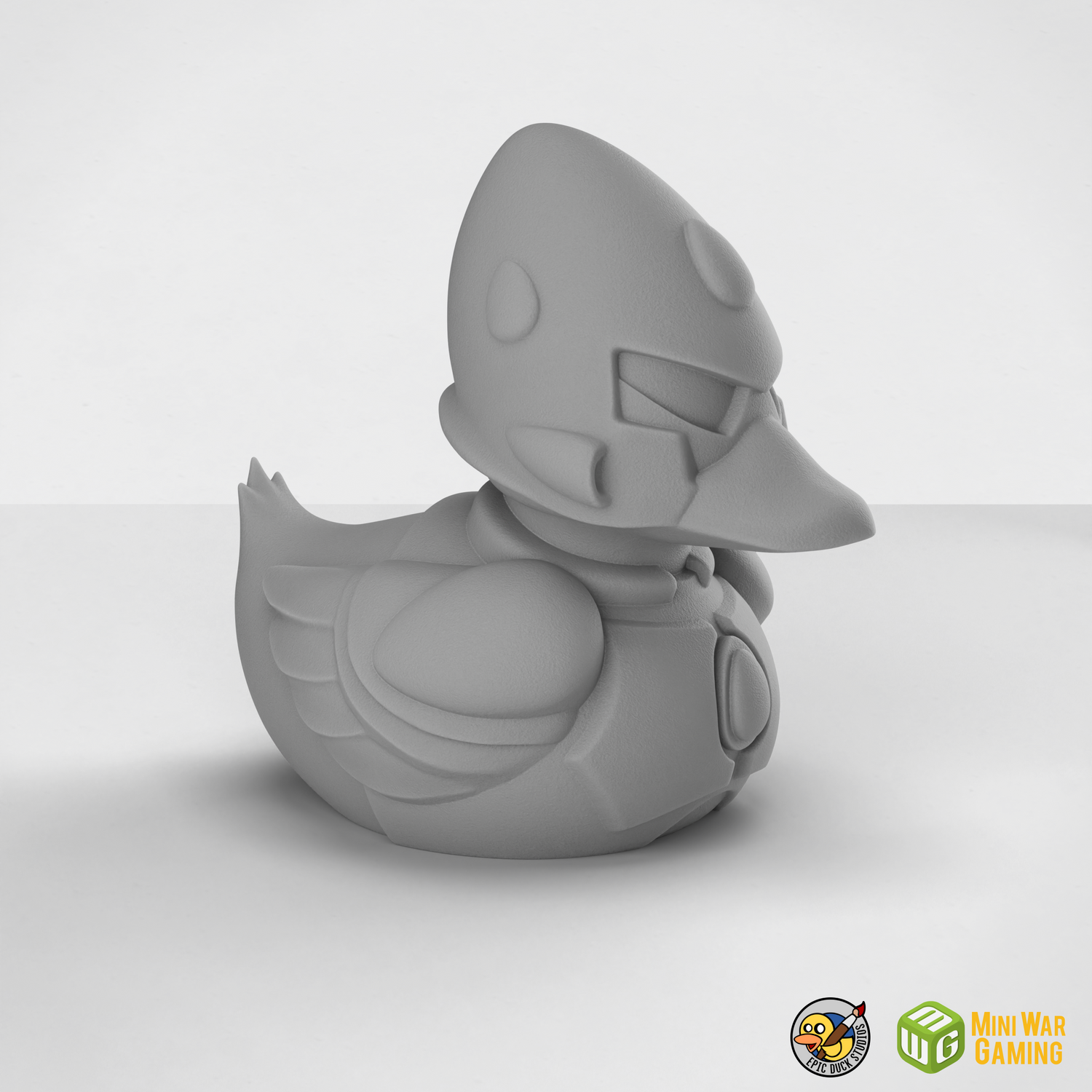 This cosmic canard comes decked out in dazzling conical helmetry and sleek space elf armor that's bound to make other miniatures green (or should we say teal?) with envy. Adorned with shimmering gems reminiscent of interstellar rubber ducks gone rogue, it’s got no need for weapons when style alone could conquer galaxies.