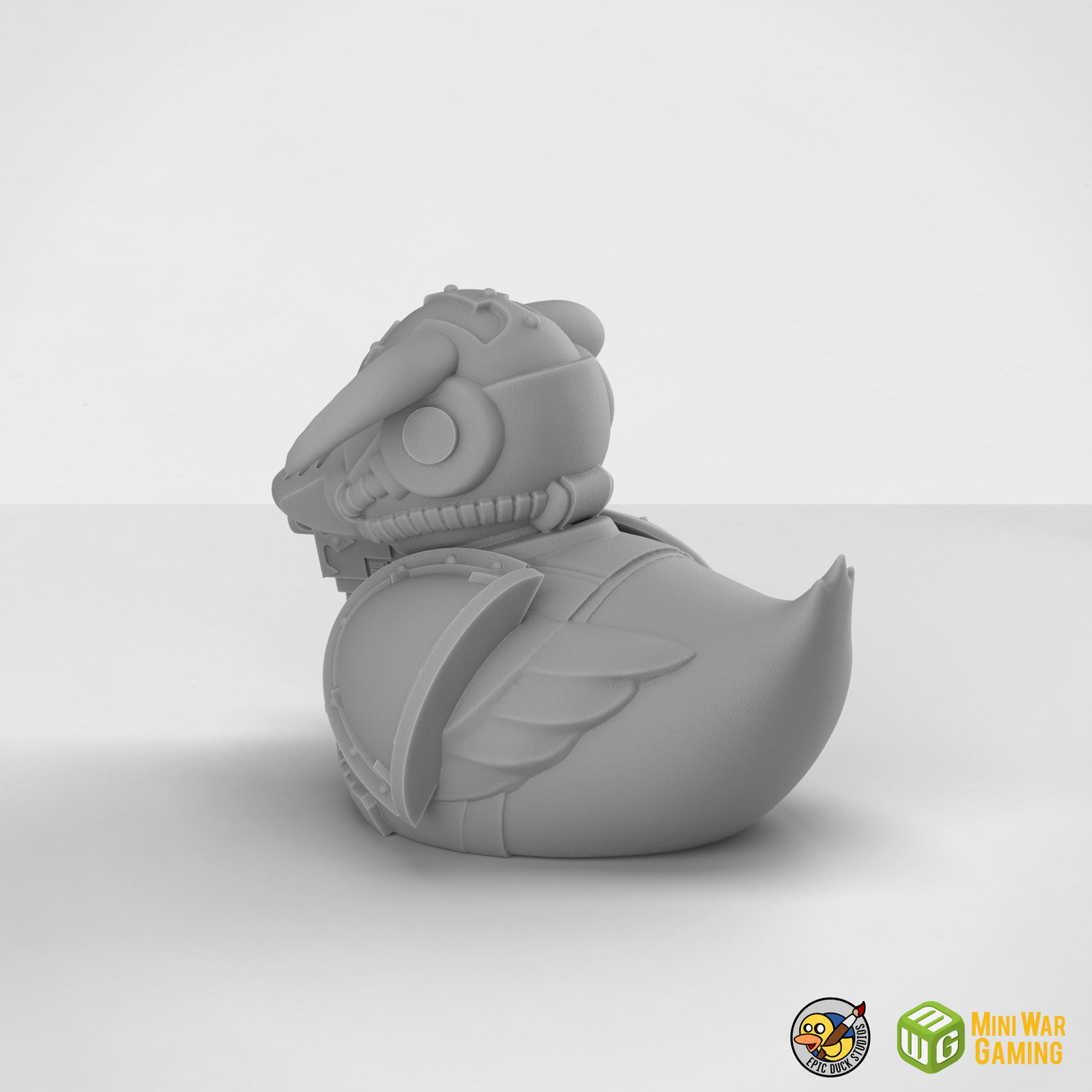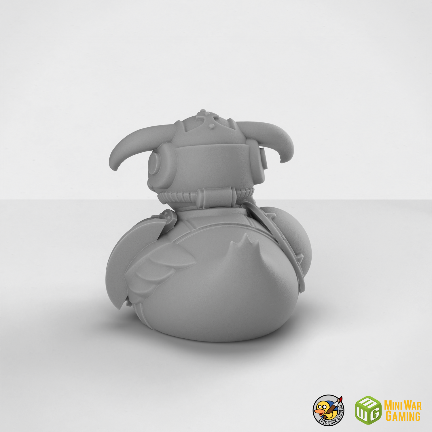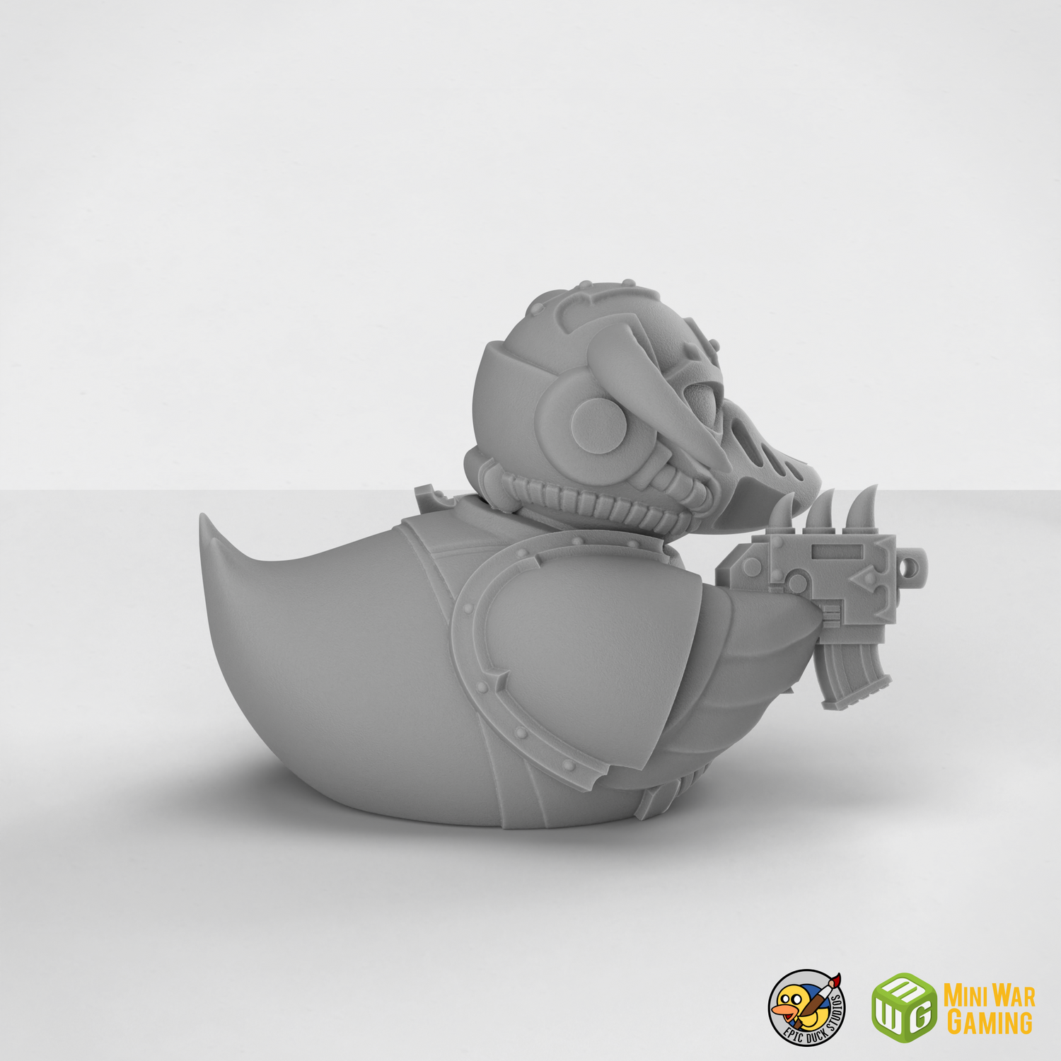 Armed with its trusty pistol and clad in menacing power armor complete with horned helmet, this rubbery marine is ready to ruffle some feathers. Its spiky edge trim screams "chaos," while maintaining just enough whimsy for you not to take it too mallardly—truly making it stand out among other miniatures!