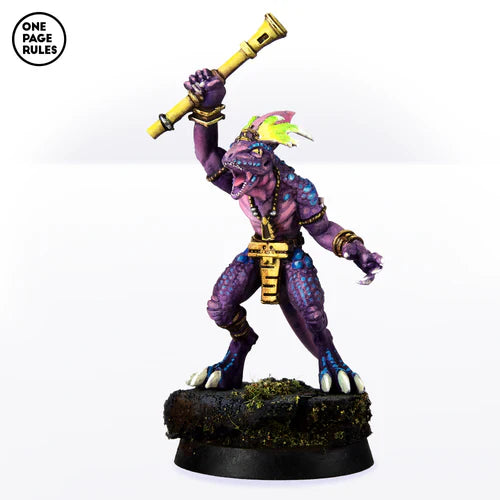 Each Gecko warrior is armed not just with blowguns but also an array of bone jewelry that adds character to each model. Their scales shimmer under light while feathers add texture; these elements combined create a unique aesthetic reminiscent of Aztec or Mayan artistry - truly setting them apart as infantry units in any tabletop wargame.