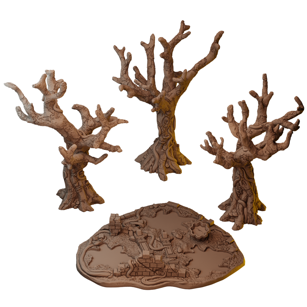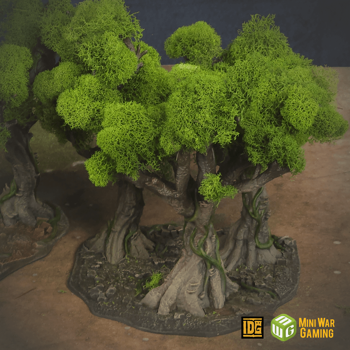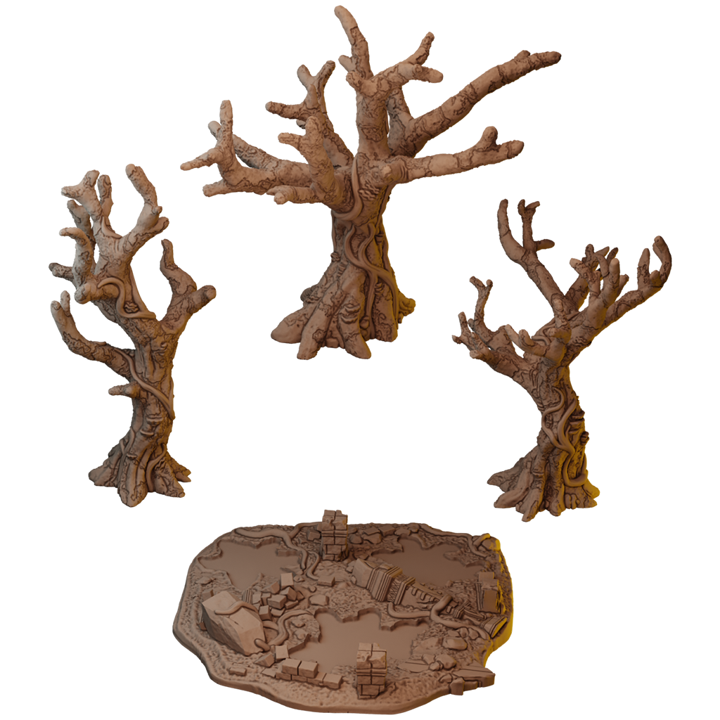 Set of Six Ancient Trees in Jungle Temple Ruins by MiniWarGaming and I Demo Games