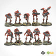 Classified as an Elite unit, these imposing droids are perfect for Ravaged Star or any other grimdark tabletop wargame seeking versatile, heavily armored enforcement squads. Their modular aesthetic and dynamic poses also make them ideal for kitbashing or integrating into custom sci-fi games and RPG campaigns.